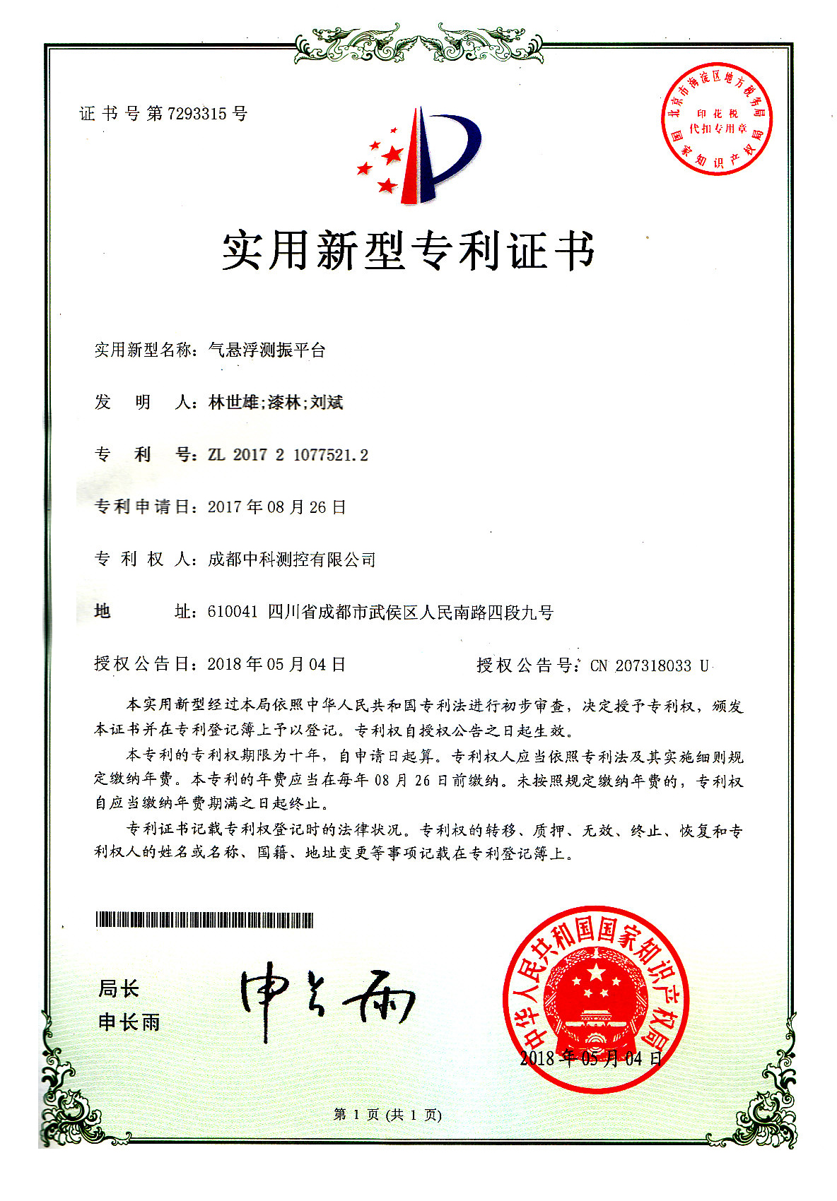 201206月:经中国测试技术研究院,国家基准振动台严格测试,1Hz~3KHz测试达标。